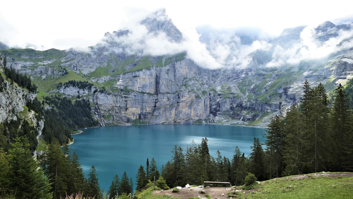 Uživajte u pogledu na mirne vode koje odražavaju nebo i okolne vrhove.